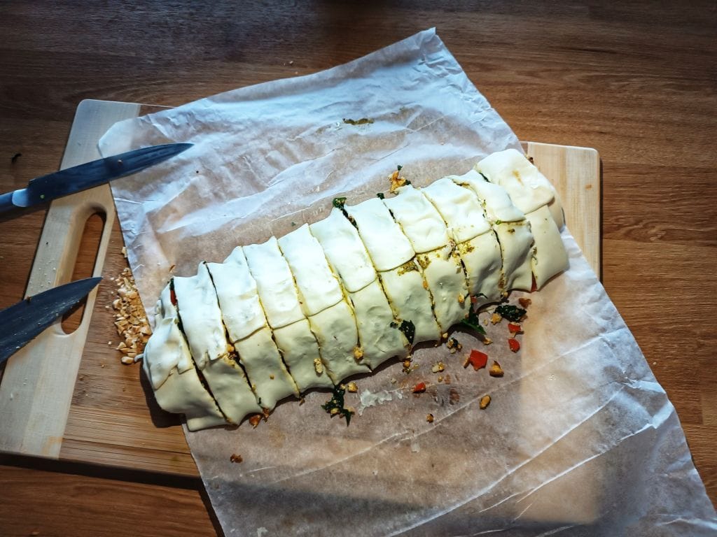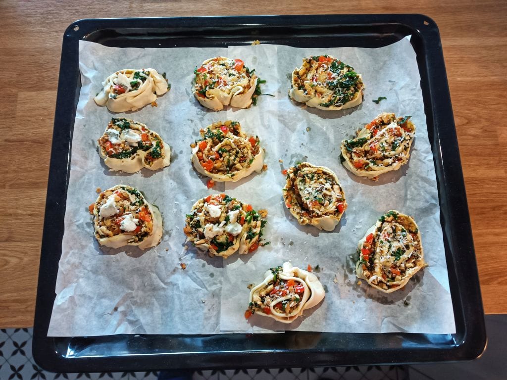 Ślimaczki francuskie po włosku. Rozumiesz coś z tego? Nie musisz. 🙂 Zdjęcie mówi więcej niż 1000 słów. Ciasto francuskie zawinięte z farszem w stylu włoskim, pocięte na grube plastry i upieczone w piekarniku. Genialna w swej prostocie przekąska. Buon appetito!